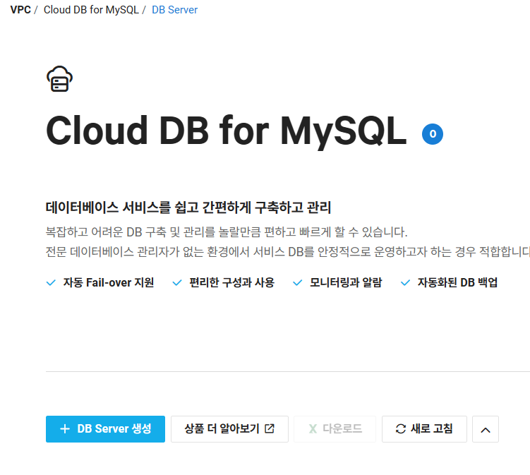 NaverCloud에 Cloud DB for MySQL서비스이다.