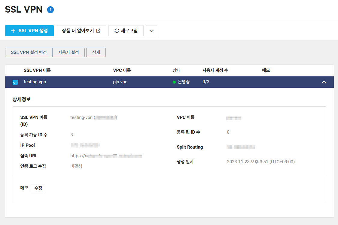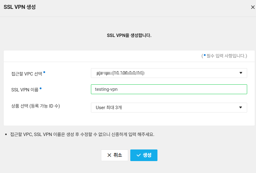 Private구역에 DB서버를 생성했고, 외부에서 접속하기 위한 방법중 SSL VPN을 활용해보려 한다.