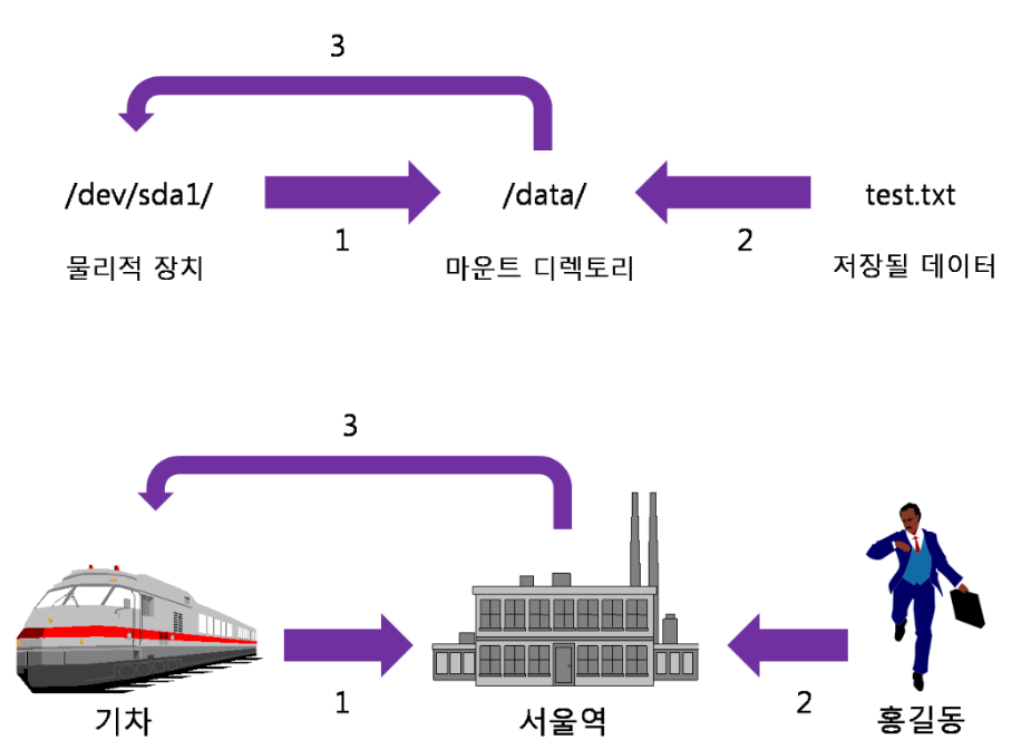 기차는 서울역에서 정차 = 디스크를 디렉토리에 마운트