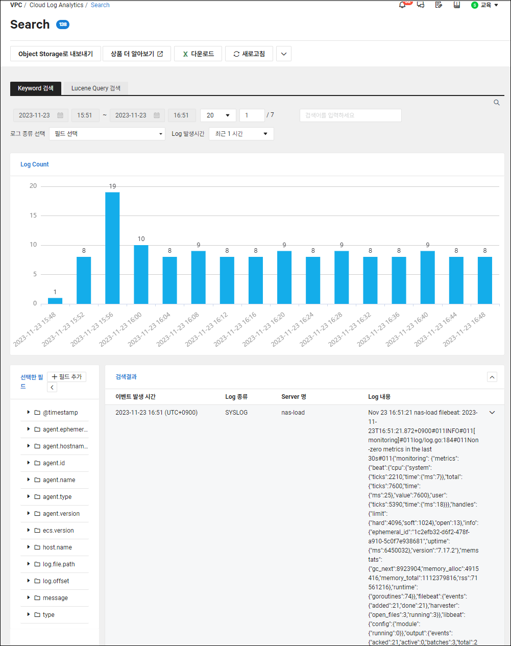 Search에서는 구체적인 Log 내용을 위와 같이 확인 할 수 있다.