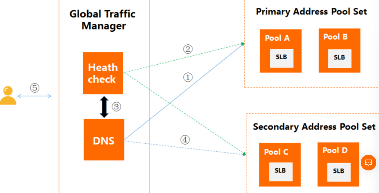 Global Traffic Manager 서비스는 글로벌 규모의 DNS기반 트래픽 분산 처리 서비스이다. 로드밸런싱 서비스이기 때문에 헬스체크 기능이 들어가있어 리소스를 확인하면서 트래픽을 분산하게끔 해준다.