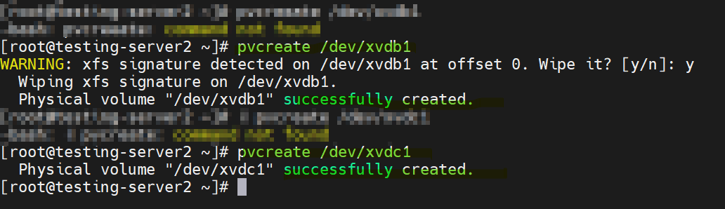 vgcreate lvmVG /dev/xvdb1 /dev/xvdc1