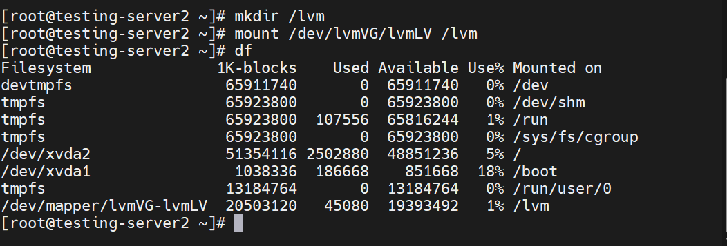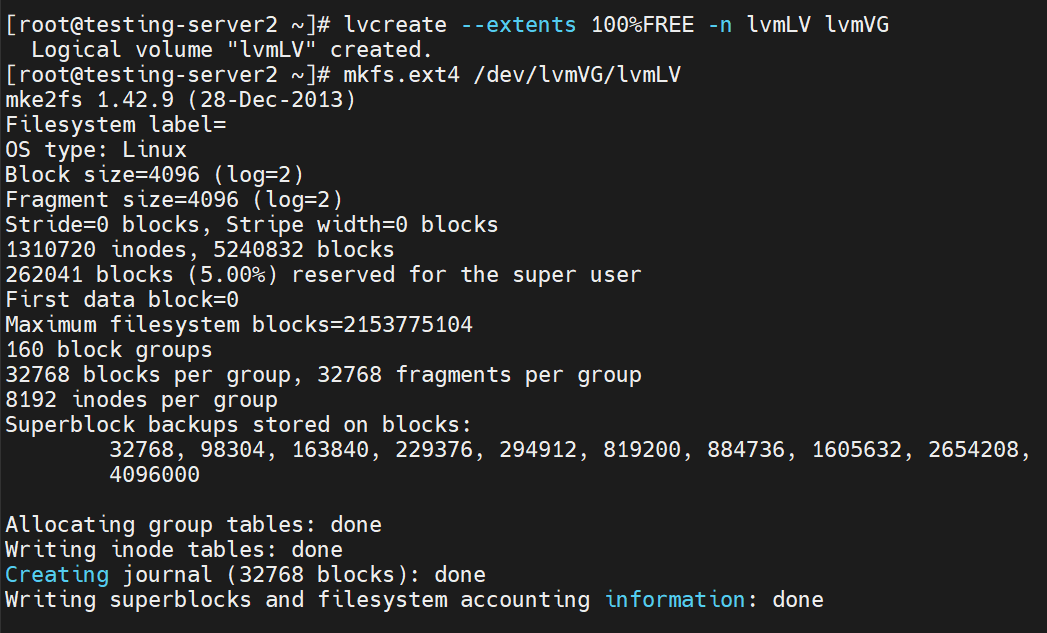 mkfs.ext4 /dev/lvmVG/lvmLV