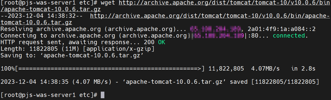 WAS 서버 안에 아파치 톰캣을 설치하려 한다.