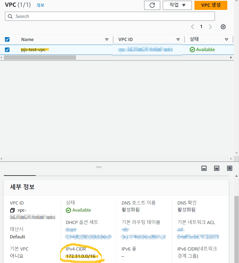 3. IP 대역은 임의로 지정해도 되나, 정해진 대역이 없다면 다음의 대역으로 진행 - 172.31.0.0/16