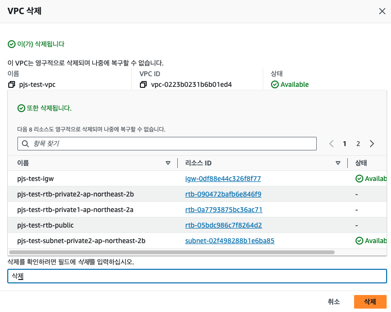 2. 앞서 생성하신 AWS N/W 자원을 삭제해주세요.