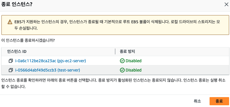 1. 앞서 생성하신 AWS EC2 VM을 삭제해주세요.