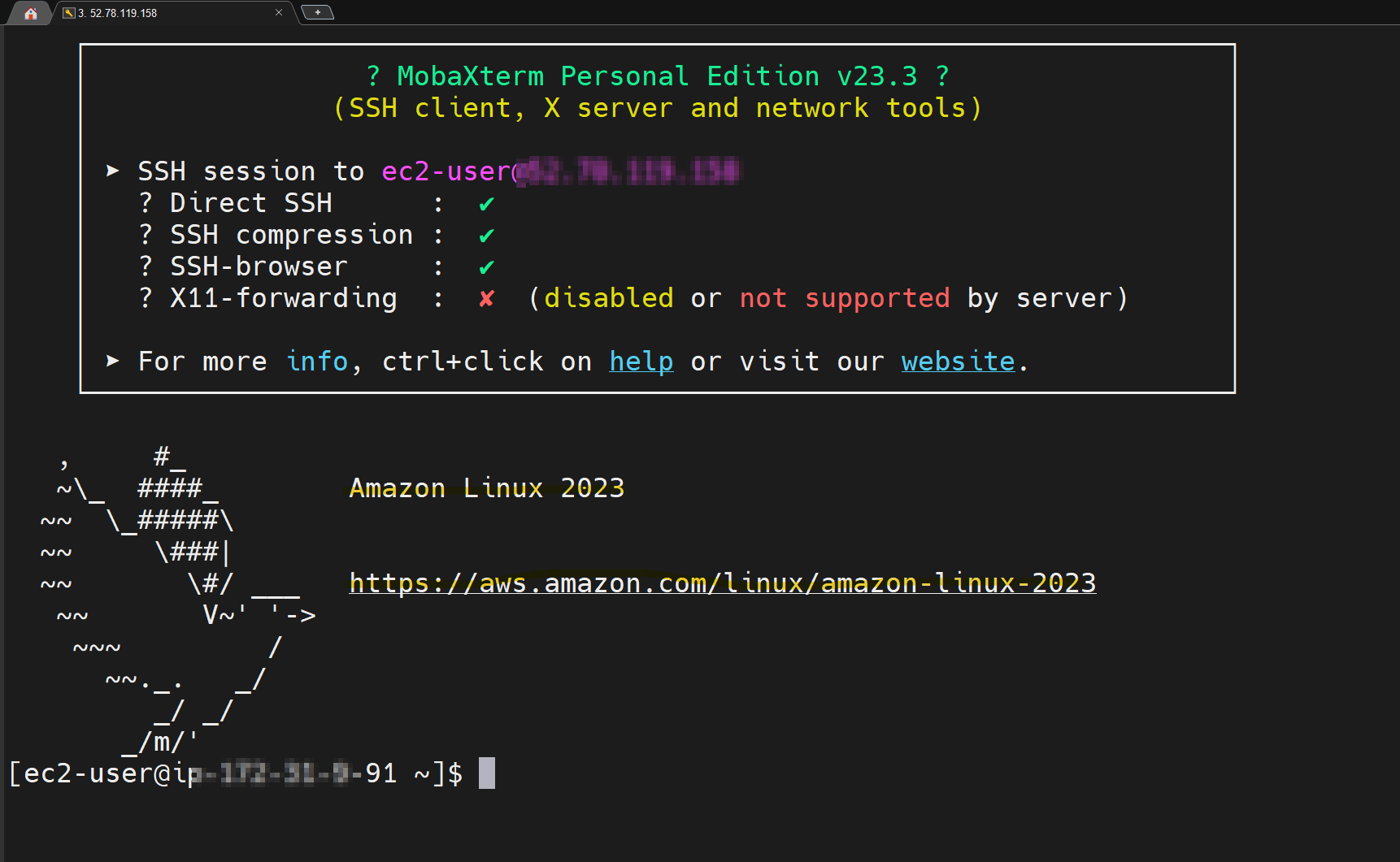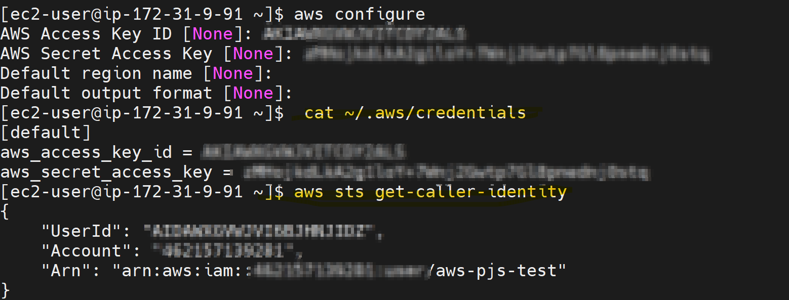 4. 접속후 앞서 발급 받은 AWS 테스트 계정의 API Key를 AWS CLI를 통해 설정