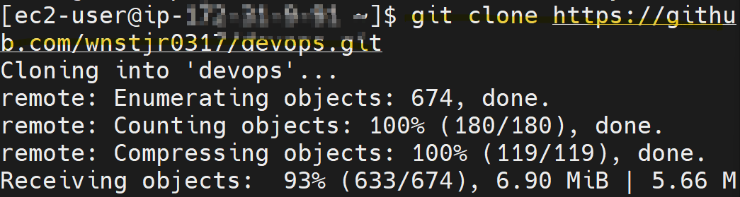 1. 생성된 AWS EC2 VM에서 Git을 설치하세요.