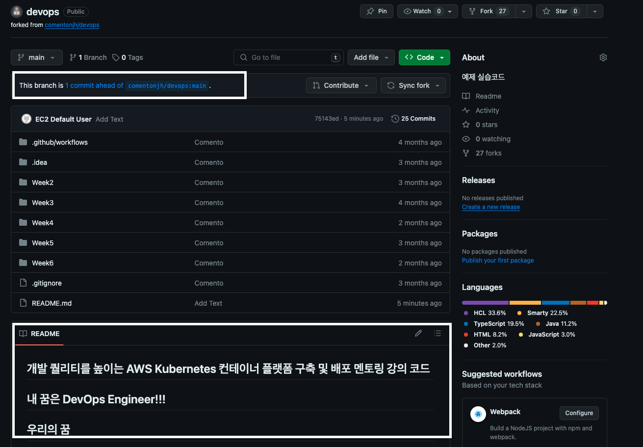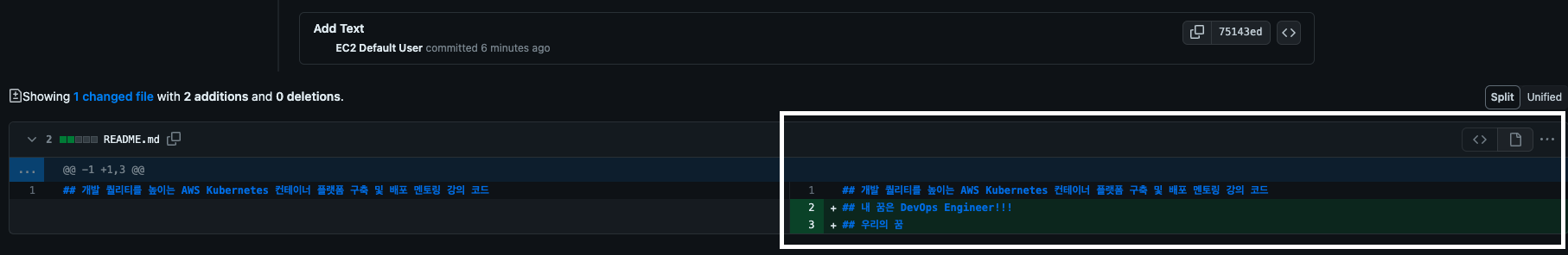 4. VM에서 코드 내용을 변경해 Github에 반영해보세요.