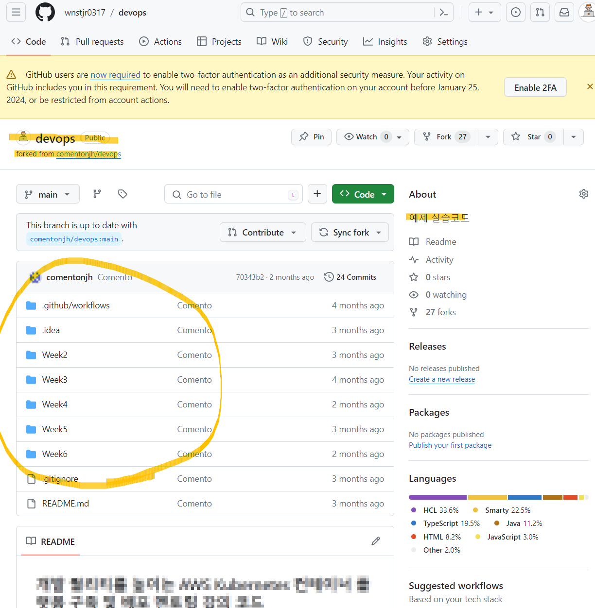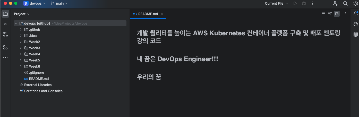 5. Github의 변동 내용을 Local PC IDE(IntelliJ) 프로젝트에 Sync해주세요.