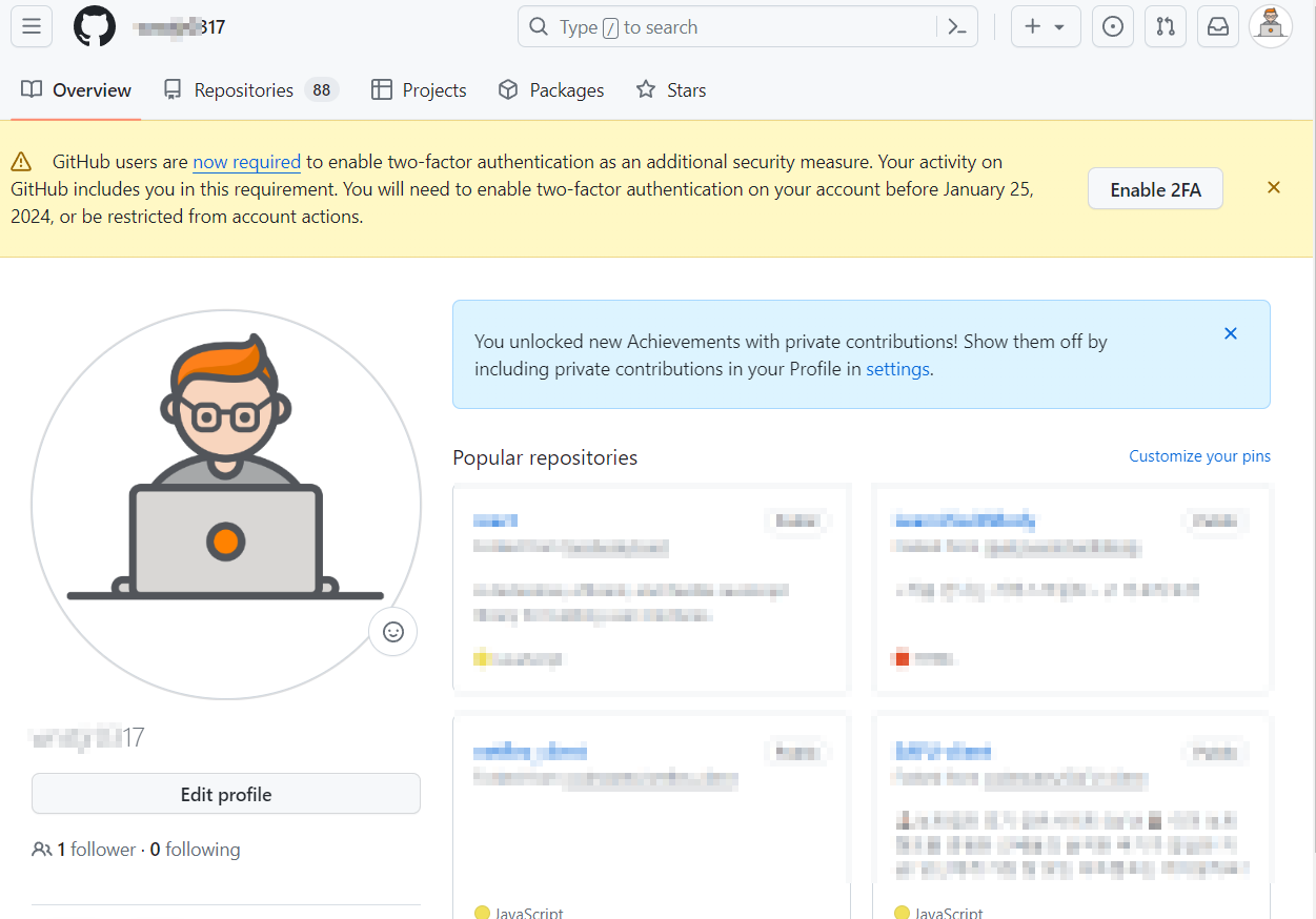 4. 테스트 계정을 로그인하시고 MFA 설정을 해주세요.
