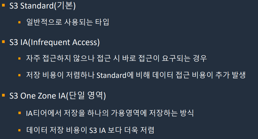 - 저장비용 = Standard > S3 IA > S3 One Zone IA