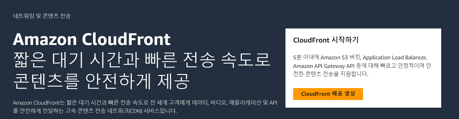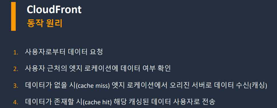 CDN 기술을 통한 AWS에서 제공하는 CloudFront 서비스 👉 데이터 캐싱을 통해 사용자에게 데이터를 빠른속도로 전달