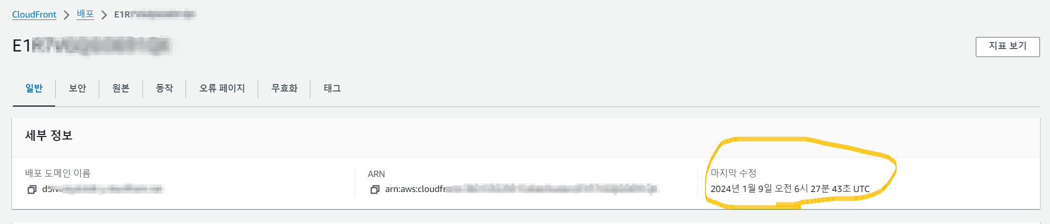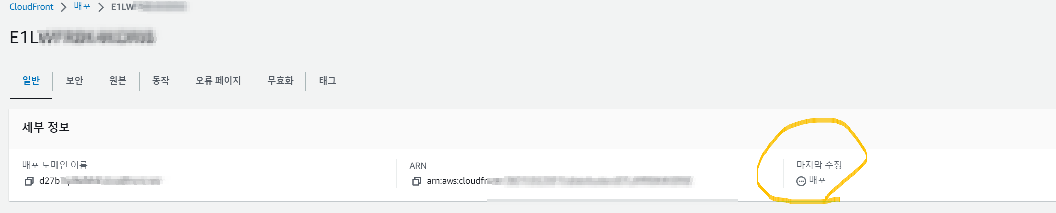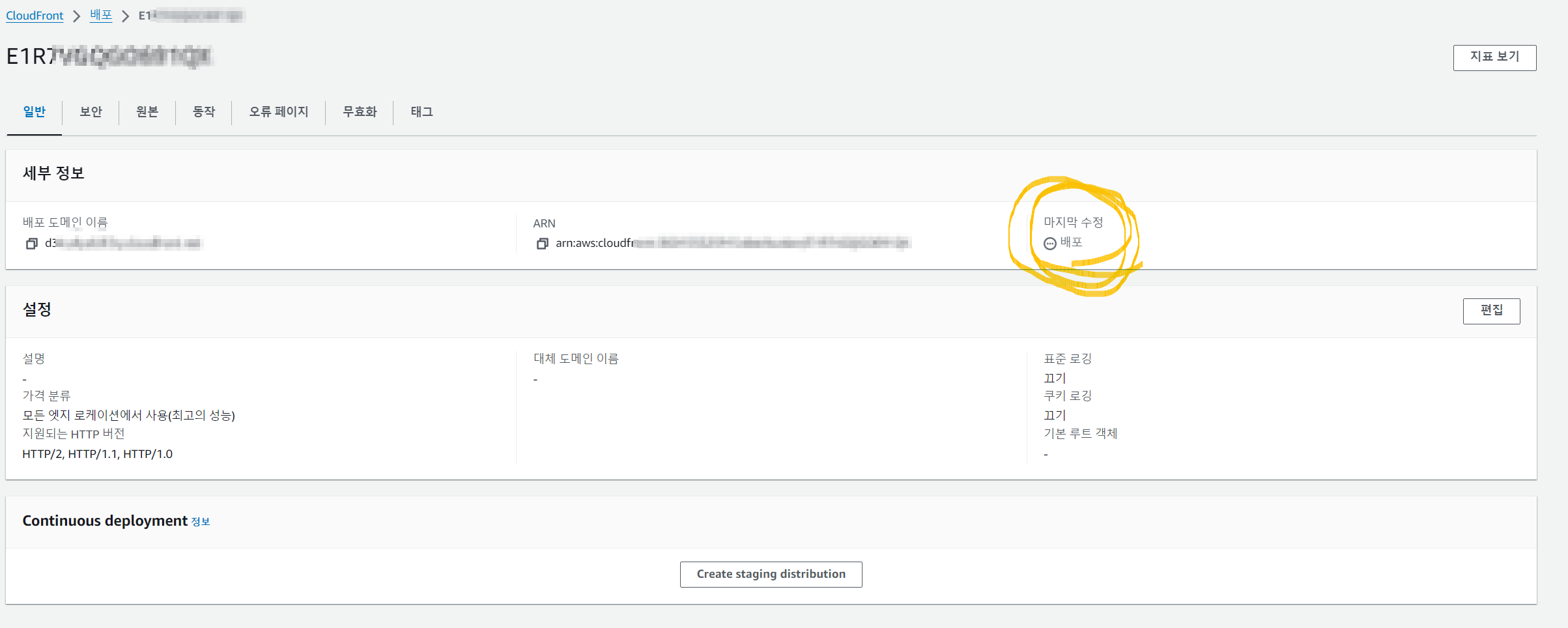 Cloud Front는 배포가 되어야 서비스를 최종적으로 이용할 수 있기 때문에 약간의 시간이 걸린다.