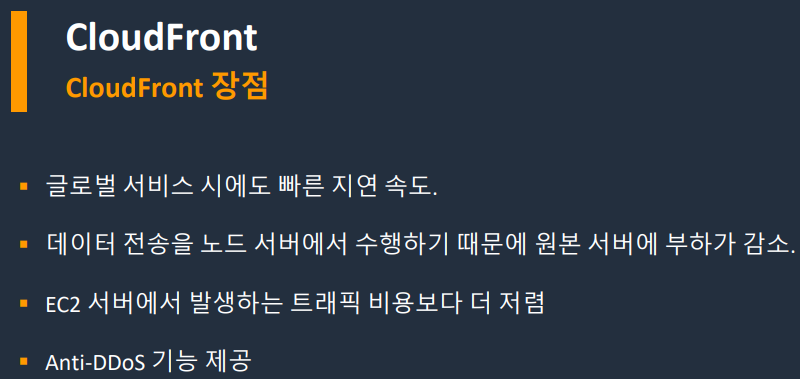 CDN 기술을 통한 AWS에서 제공하는 CloudFront 서비스 👉 데이터 캐싱을 통해 사용자에게 데이터를 빠른속도로 전달