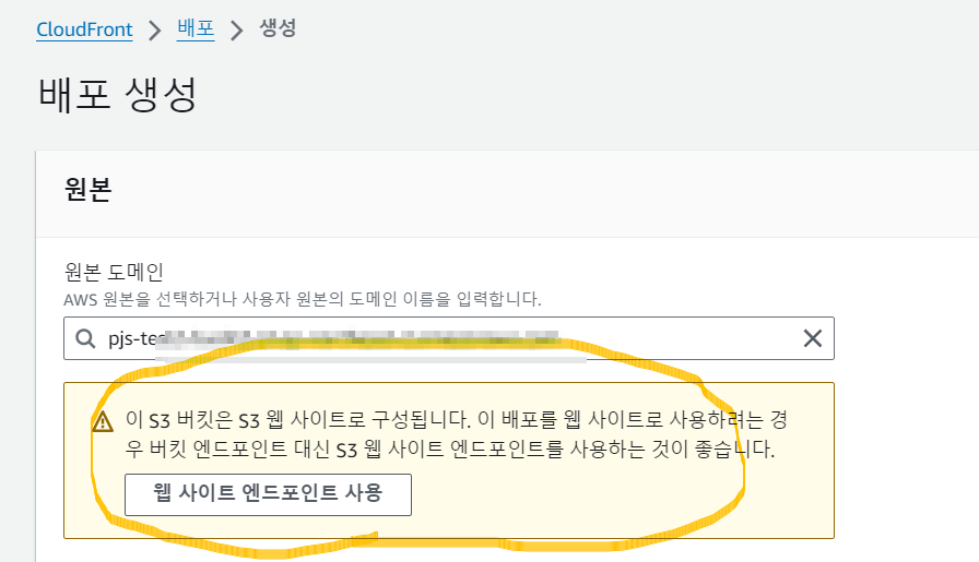 기존에 S3에 만들어둔 Bucket 도메인이 있기 때문에 해당 도메인으로 실습을 할 예정이다.