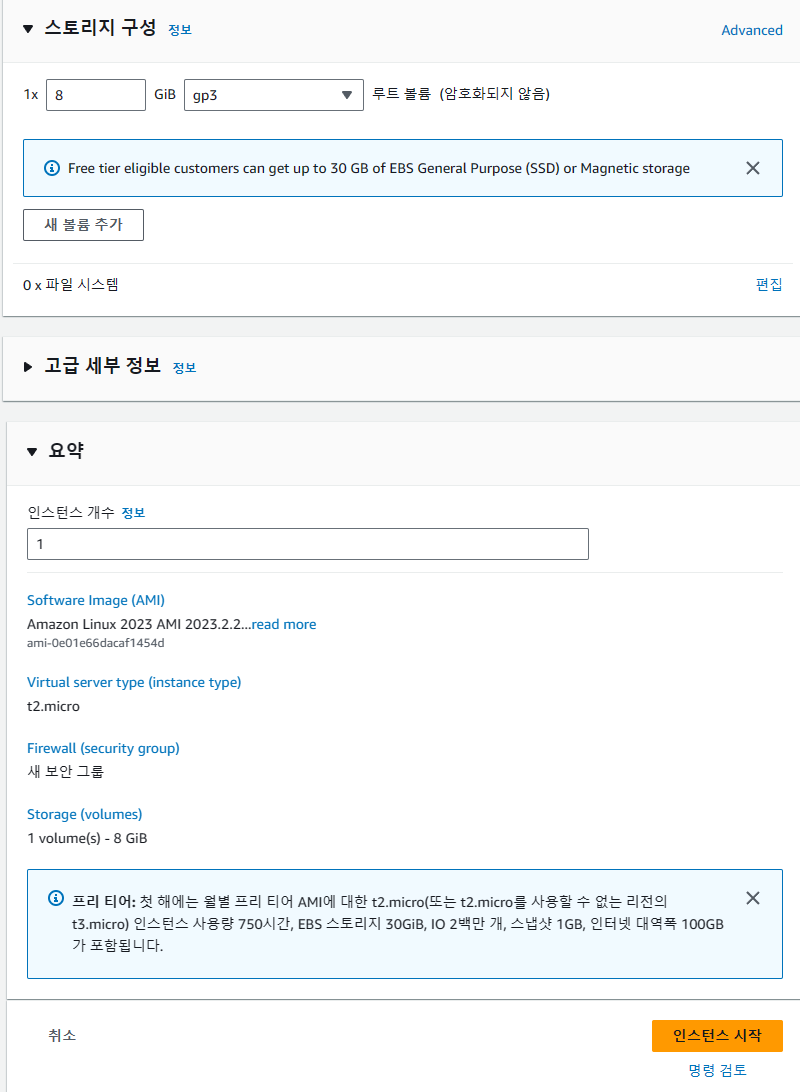 - 생성되는 서버의 스토리지를 설정하는 곳인데, 요구사항에 맞게 설정하면 된다.