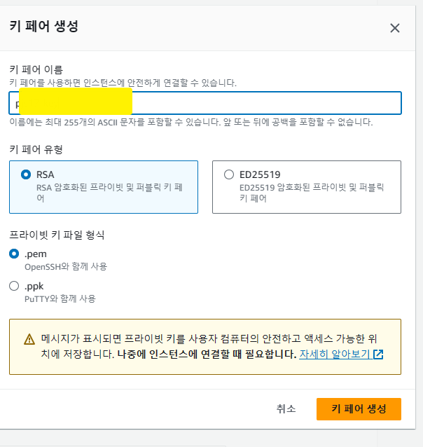 - 대부분 ssh 접속을 하기 때문에 .pem으로 생성