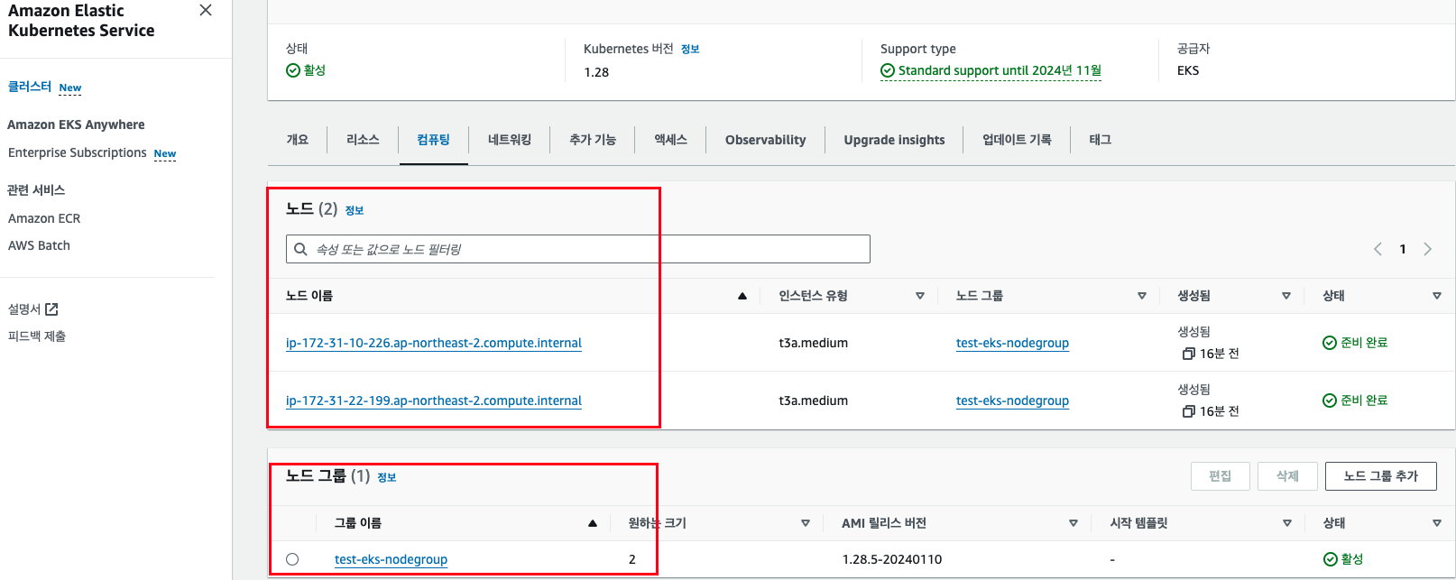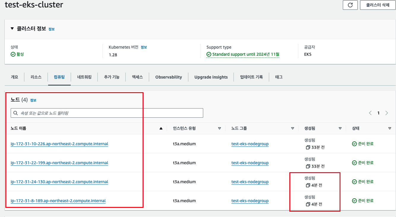 EKS에서 기존에 있던 2개에서 4개 사이즈에 맞춰서 2개가 뒤에 추가되는 것을 확인할 수 있다.