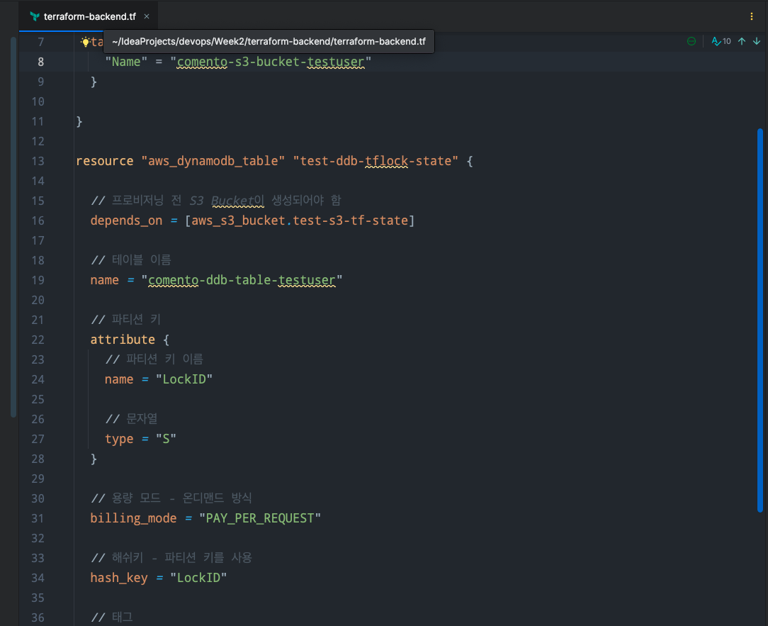 3. Terraform Backend 구성 코드를 확인해주세요.