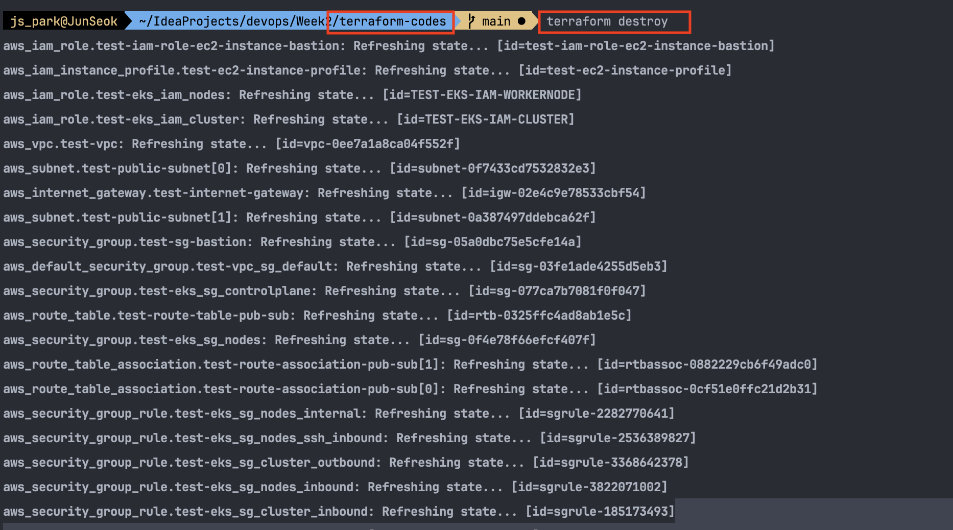 2. 기존 Terraform 프로비저닝 리소스를 전체 삭제해주세요.