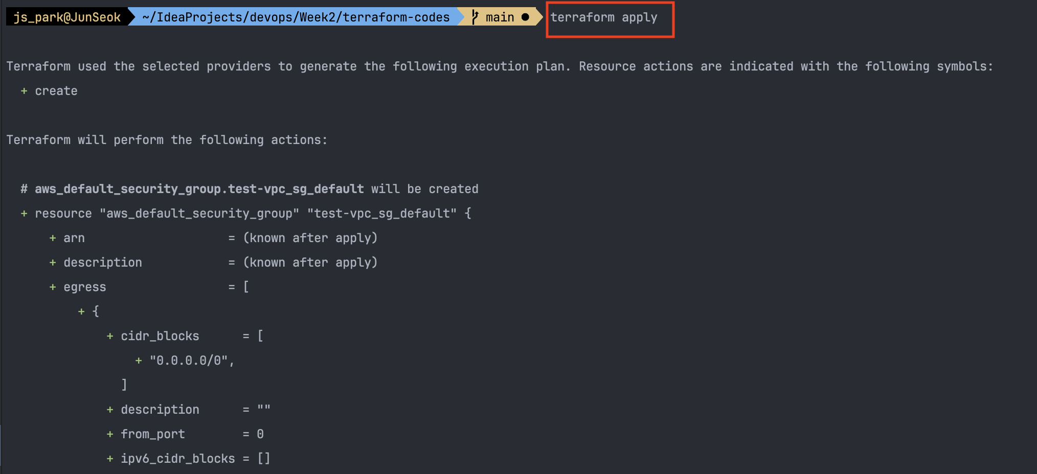 2. Terraform Codes에서 N/W 리소스를 프로비저닝 해주세요.