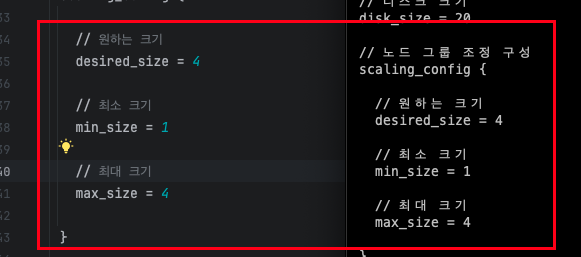 eks-cluster.tf 파일에서 생성하는 노드의 크기를 4개로 조정한다. 조정한 후 Auto-scaling을 통한 인스턴스를 생성한다.
