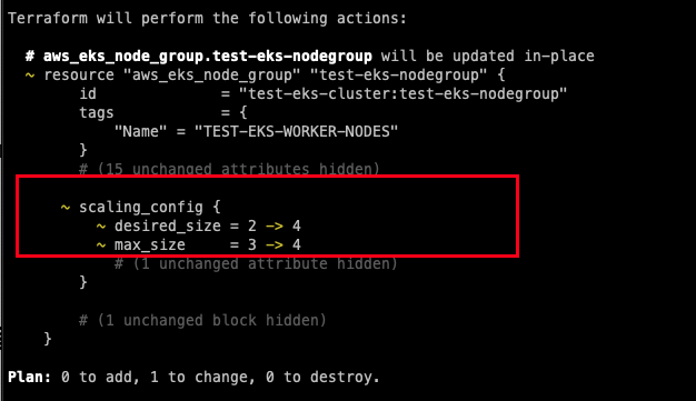 terraform plan 명령어를 통해서 size가 4로 변경되는 것을 확인 할 수 있다.