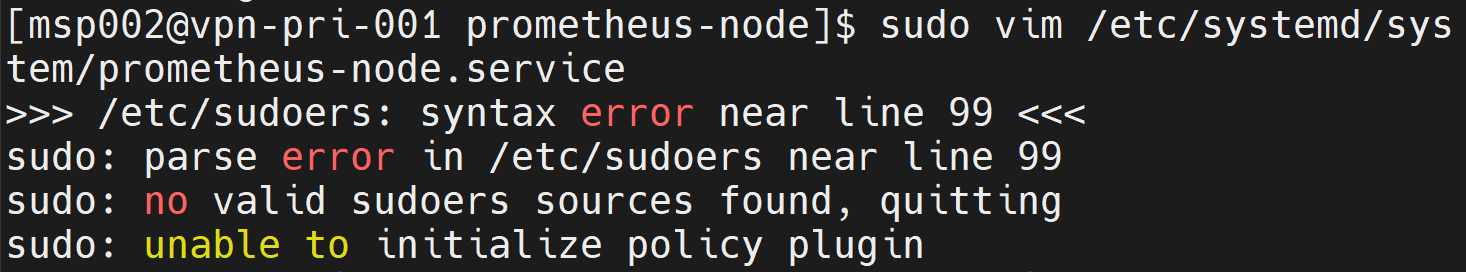 프라이빗 서버에서 프로메테우스-노드 서비스를 vim으로 오픈하는 과정에서 에러가 발생!
