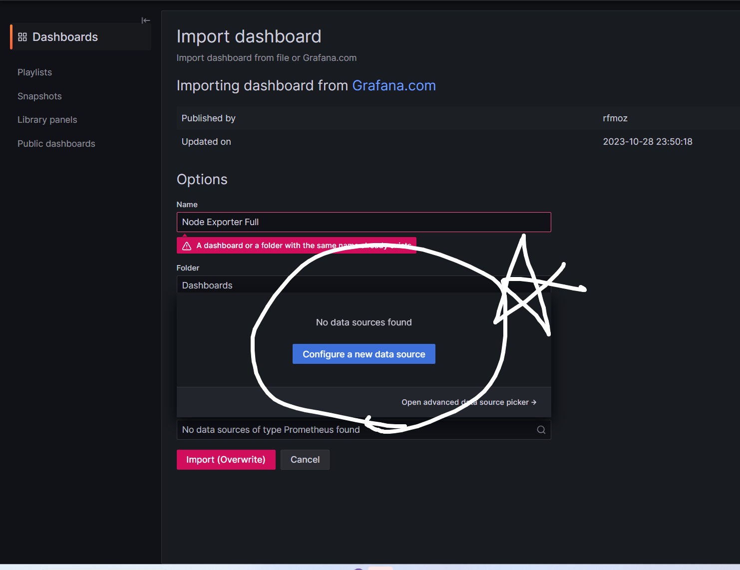 import a dashboard 클릭!