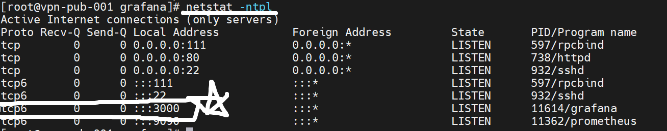 3000으로 그라파나가 포트 열린 것을 확인 할 수 있다.