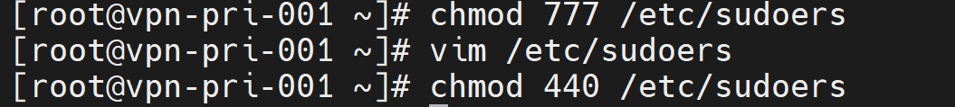 sudoers에 접근해서 권한부여를 한다.