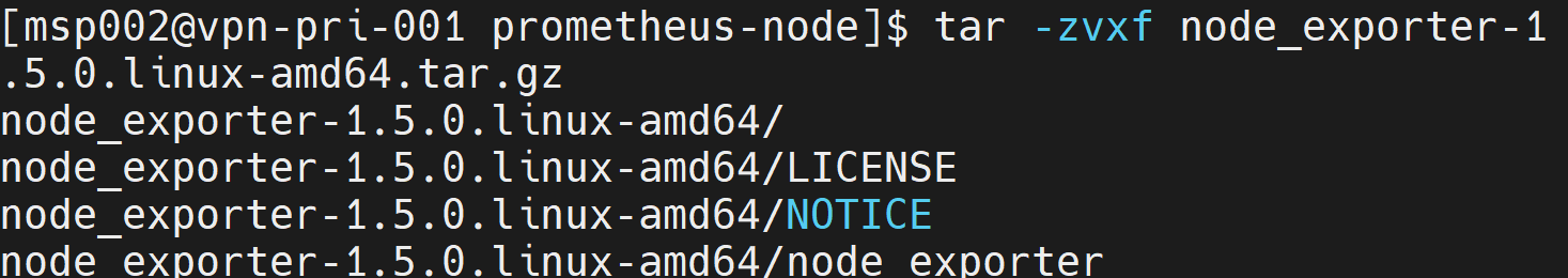 tar -zvxf 로 노드익스포터 압축해제