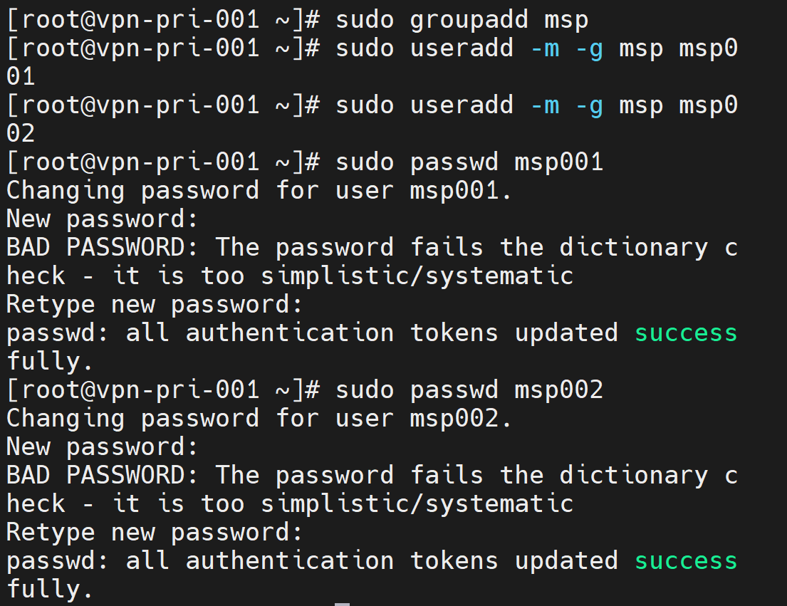 그러면 계정을 생성한 msp001 로 접근하면, 정상적으로 접근이 가능하며 패스워드를 입력하라는 창이 뜬다.