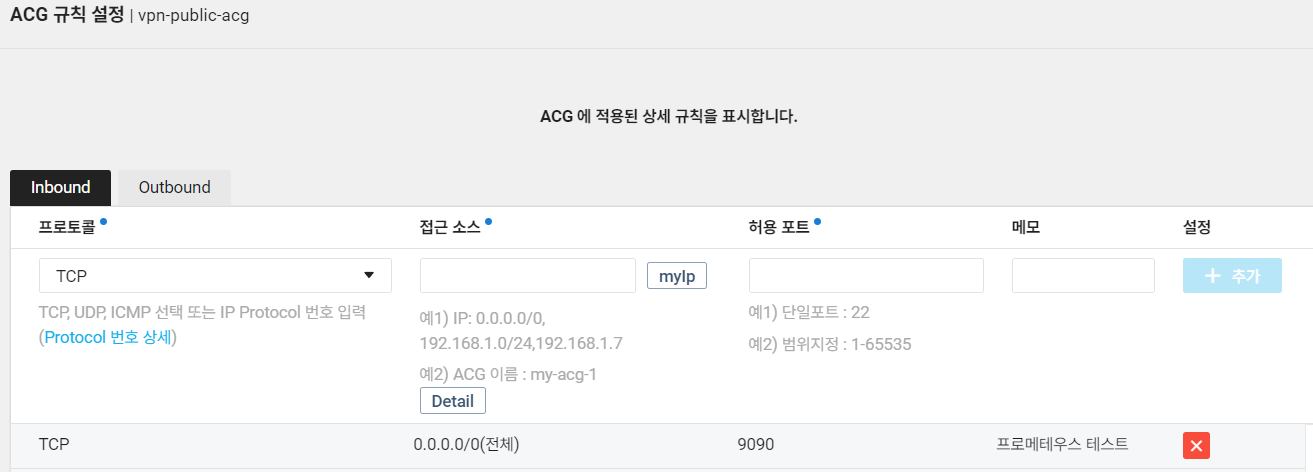 웹에서 통신을 해야하기 때문에 Web Server로 설정된 ACG인 Public-acg를 열어준다.