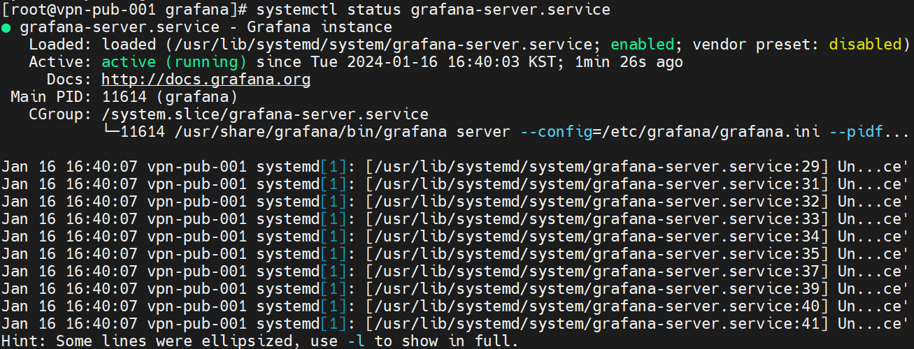 systemctl로 그라파다 시작 및 enable로 구동 확인!