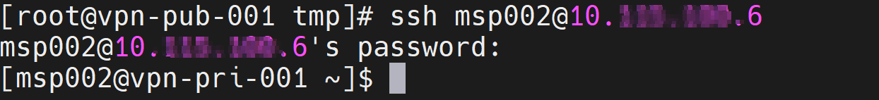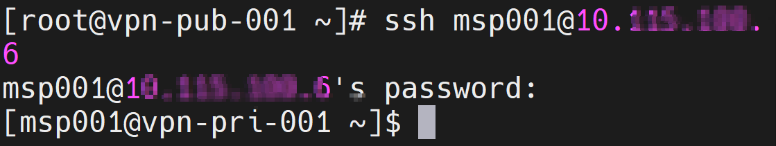 그러면 계정을 생성한 msp001 로 접근하면, 정상적으로 접근이 가능하며 패스워드를 입력하라는 창이 뜬다.