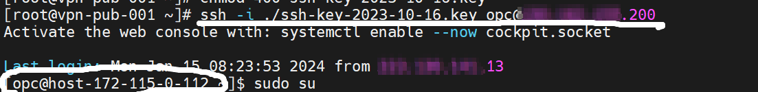 ssh -i ./pem이름.key opc@IP주소