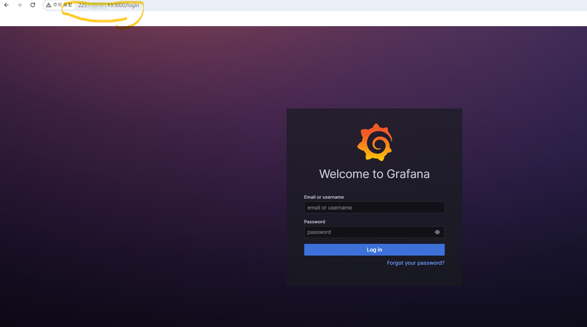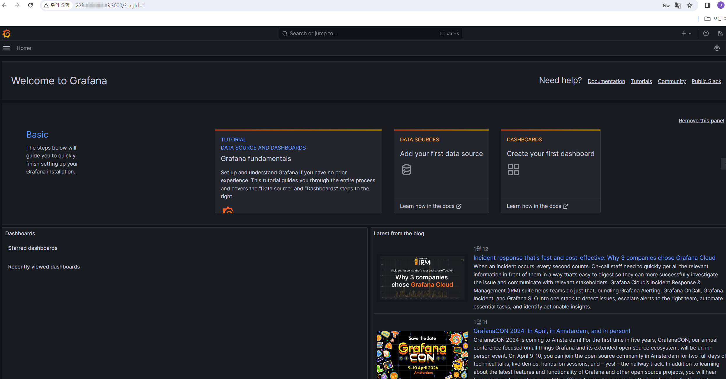 정상적으로 그라파나 웹에 접속을 했고, 계정 ID/PW로 접속한다.