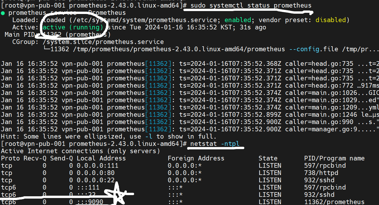 프로메테우스 프로그램을 구동하고, 상태를 보면 정상적으로 작동하고 있는 것을 확인 가능핟.