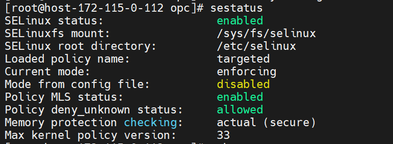 위 예시는 오류이다. 즉, sestatus 통해서 enable이 뜨면 SELinux 상태가 정상적인것이다.