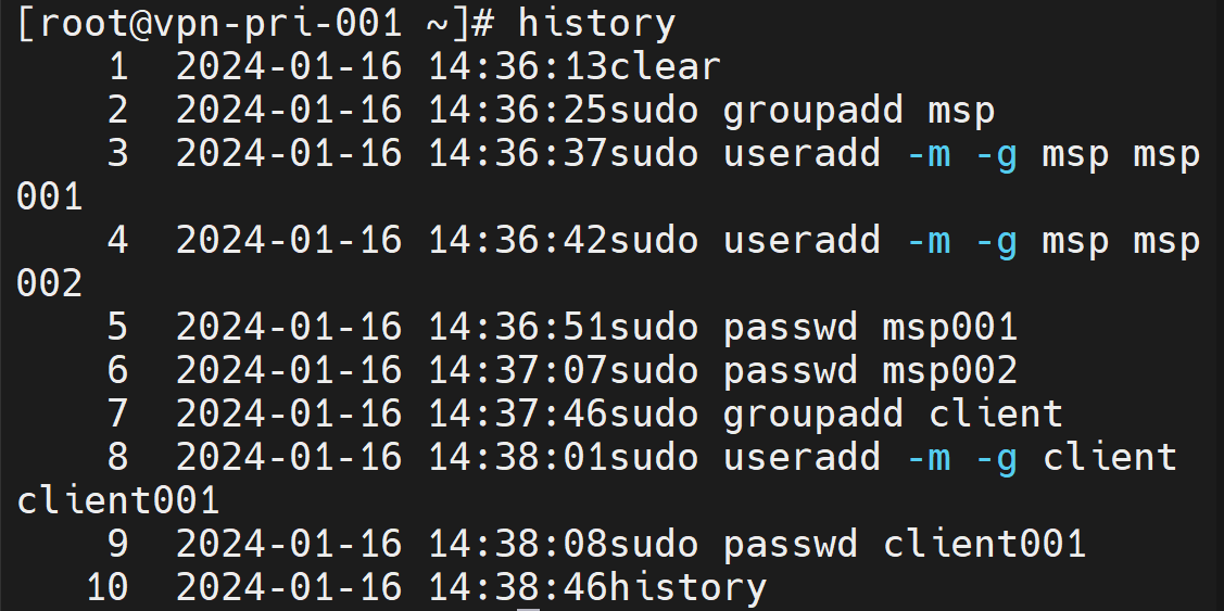 export HISTSIZE = 1000 👉histroy를 1000개까지 표시한다. 1000개 넘으면 제일 처음 history부터 삭제한다.