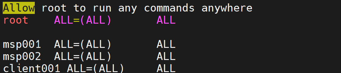 vim으로 접근해서 위에서 생성한 계정을 ALL 권한을 부여!