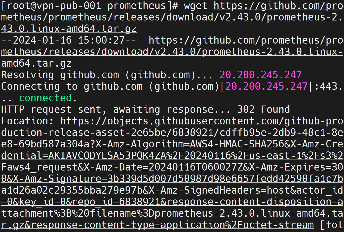 wget을 통한 프로메테우스 파일을 다운로드 받는다.