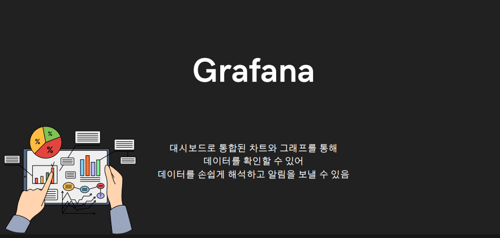 - 그라파나는 시스템 관점(cpu, 메모리, 디스크)의 메트릭 지표를 시각화하는데 특화되어 있다.