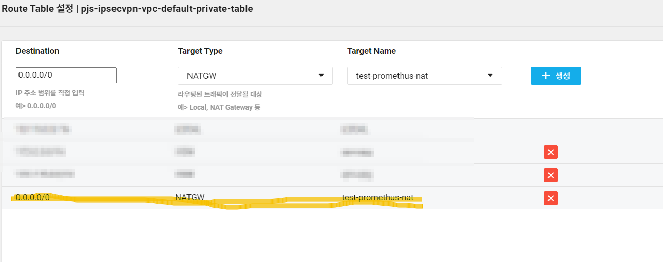 Route Table에 NATGW로 프로메테우스 서버를 타켓으로 설정한다.