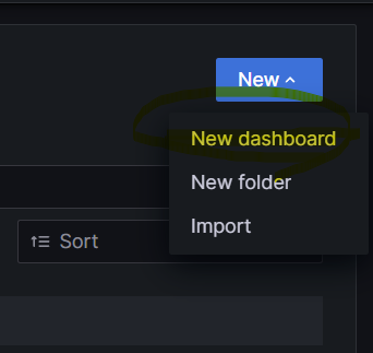 좌측 상단에 NEW 버튼 클릭 후, NEW dashboard 클릭