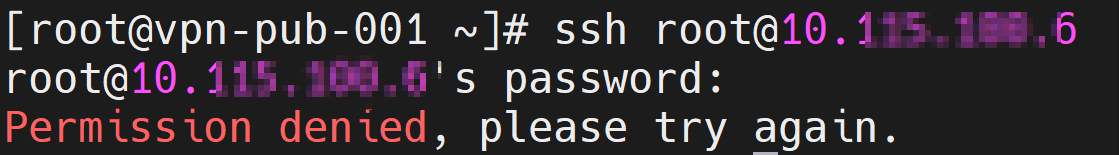 위에서 설정한 Private서버에 root로 접근하려고 하면 Permission denied 이 뜬다. 접근이 안됨!