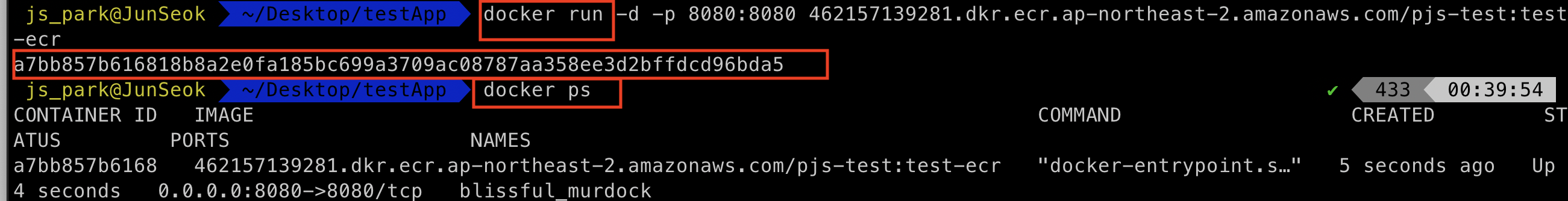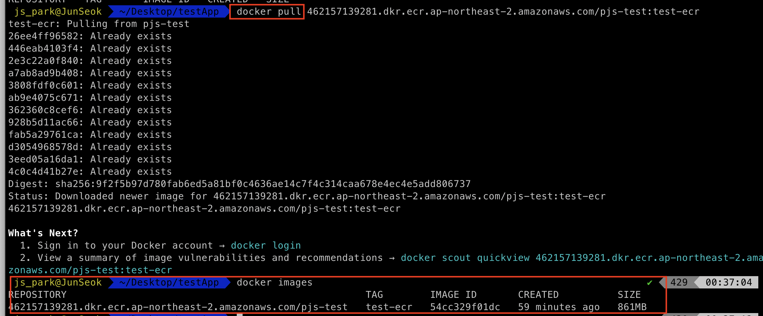 • Local-PC로 AWS ECR에 저장된 Docker 컨테이너 이미지를 Pull(가져오기)